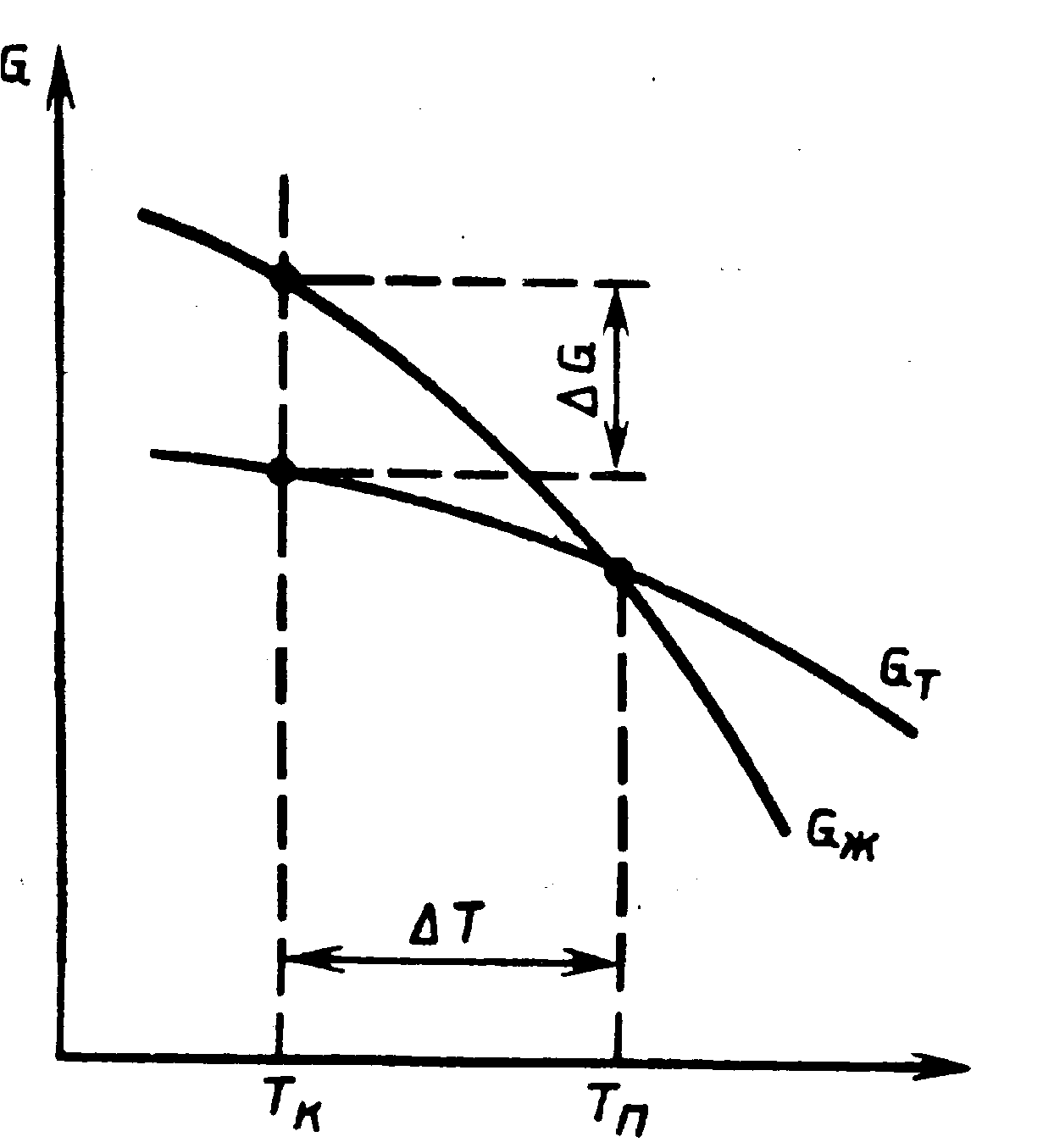 где ТК– температура переохлаждения, ТН– равновесная температура, при которой могут существовать обе фазы – жидкая и твердая.