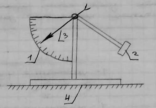 Шкала прибора, 2- маятник, 3- стрелка, 4- мокрое покрытие
