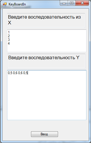 При вводе исходных данных и расчета форма KeyBoardIn имеет вид