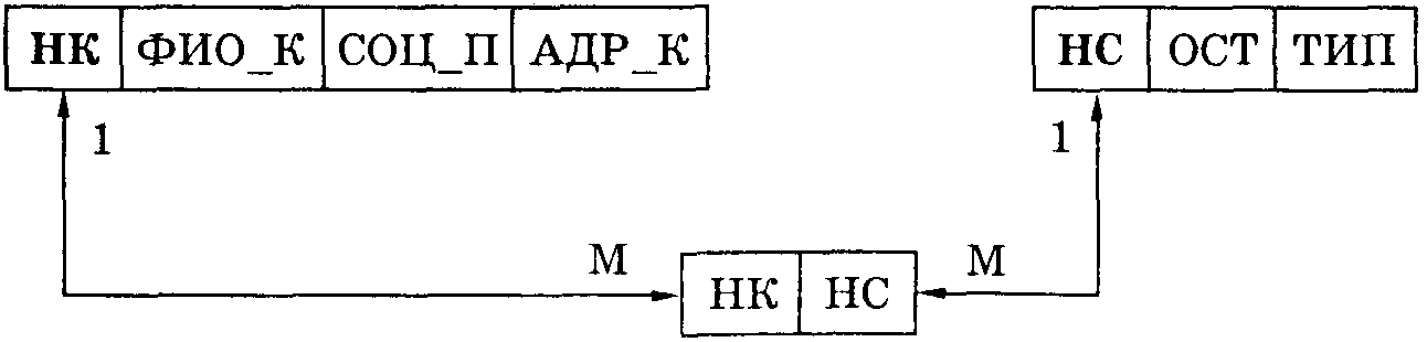 В таблице КЛИЕНТ — СЧЕТ клиенту, имеющему, например, Три счета, будут соответствовать три строки с одним и тем же номером клиента. А счет, у которого, например, два владельца, представляется двумя строками с различными номерами клиентов, владеющих этим счетом.