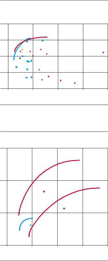 Ein Vergleich der unteren Ländermit der Brancheneffizienzgrenze zeigt Interessantes: Weil die einzelnen Länder und Branchen annahmegemäss identische erwartete Renditen und Korrelationen aufweisen, unterscheiden sie sich nur noch bezüglich ihres erwarteten Risikos. Der Unterschied zwischen der blauen Branchenund der unteren roten Ländereffizienzgrenze in Figur 18 ist folglich auf die Risikodifferenzen zurückzuführen, welche zwischen Branchen und Ländern bestehen.