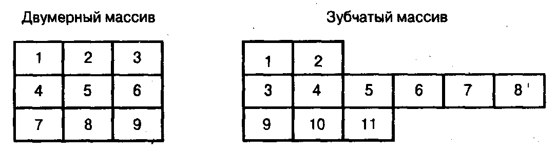 Рис. 6.4. Различие между обычным двумерным и зубчатым массивом