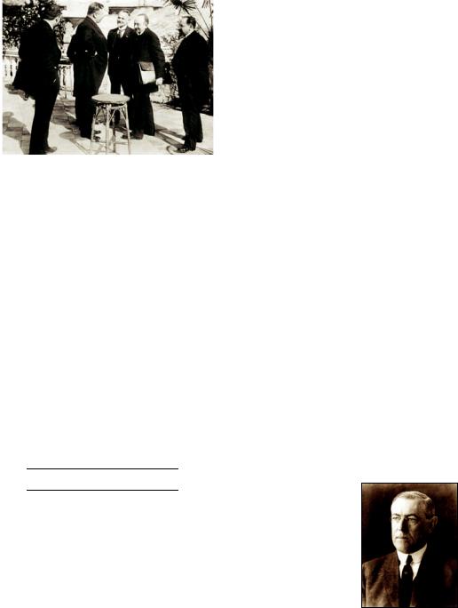 тройка» — премьер-министры Англии и Франции Д. Ллойд Джорджет, Ж. Клемансо и президент США В. Вильсон. Открывая конференцию, пр зид нт Франции Р. Пуанкаре напомнил, что ровно 48 лет назад, 18 ян аря 1871 г., в Зеркальном