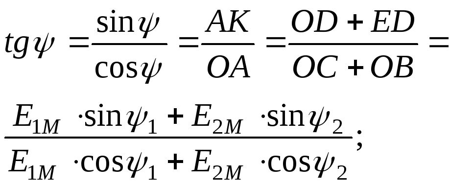 Разность начальных фаз двух синусоидальных величин одинаковой частоты и амплитуды называется углом сдвига фаз