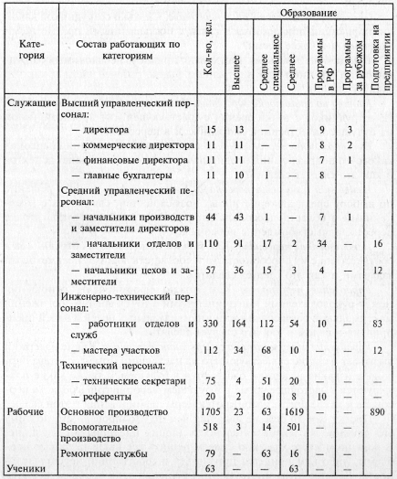 На предприятиях холдинга нет единой программы подготовки и повышения квалификации кадрового состава, отсутствует схема движения кадров по горизонтали и вертикали, что в значительной степени затрудняет работу с кадровым резервом. На предприятиях затраты на подготовку и переподготовку кадров самостоятельно не планируются. В большинстве своем работающие на предприятиях – уроженцы Ивановской области. На работу из других регионов высококвалифицированные специалисты не приглашаются из-за невозможности обеспечить их жильем. Одновременно с этим большой уровень безработицы в регионе позволяет полностью обеспечить кадрами производственные предприятия холдинга. Реализация перспективных программ холдинга потребует, по всей видимости, новых подходов к кадровой политике как по подбору и расстановке кадров на производстве, так и организации управления проектом.