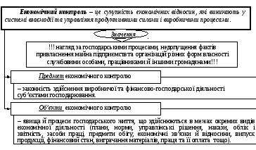 Вирізняють такі взаємозалежні складові економічного контролю (рис.1.2).