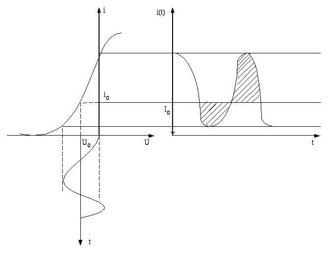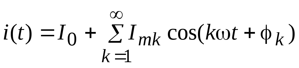 З аналізу ми бачимо, що при впливі гармонічної напруги вихідний струм являє собою періодичне коливання несинусоїдальної форми, що дозволяє представити його поруч Фур'є, тобто спектральний склад вихідного типу НЕ буде визначатися вираженням: