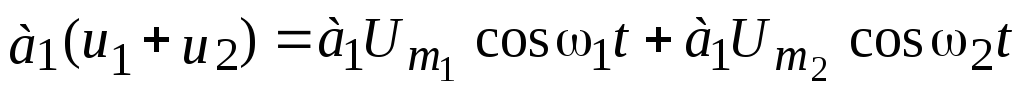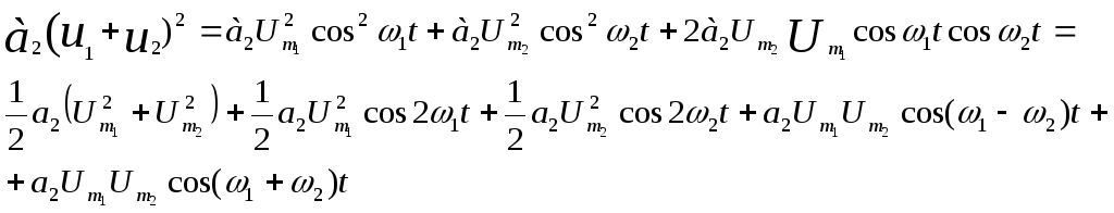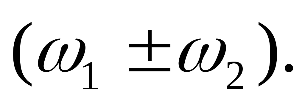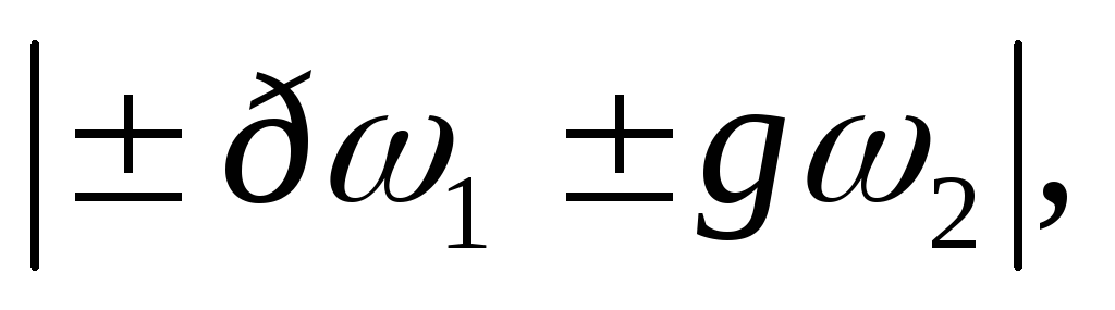 Якби розглянули четвертий член, то одержали б вищі гармонік 3ω1, 3ω2, а також комбінаційні коливання n-й ступеня, спектр буде містити гармоніки й комбінацій складові, частоти яких визначається вираженням: