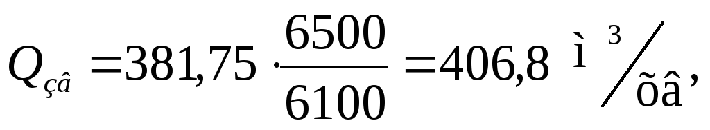 Приймаємо, що кількість обертів нагнітача дорівнює номінальному значенню n=6500 об/хв н. Визначаємо зведену витрату газу за формулою