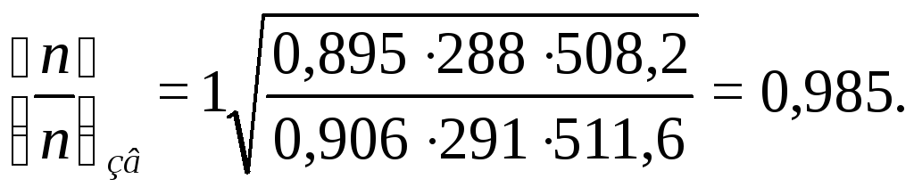 Обчислюємо зведені відносні оберти нагнітача за формулою