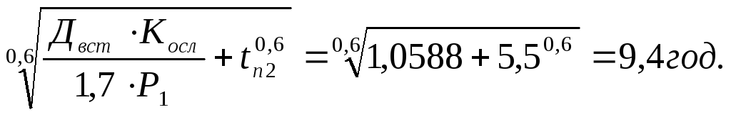 Приймаючи час початку роботи першої скороченої змін tп1= 1 год. після аварії, знаходимо за формулою (2) кінець її роботи tк1: