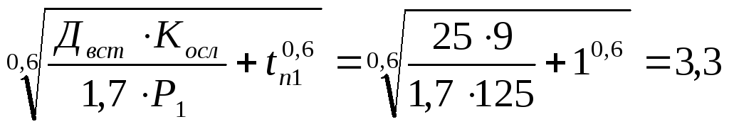 τ1 = tk1 - tn1 = 3,3-1 = 2,3<3 год., тобто роботи поинати зарано. Тому приймаємо час початку робіт tп1= 2,5 год. після аварії: