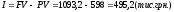 Отже, майбутня вартість вкладу дорівнює 1093,2 тис.грн. А сума складного процента за весь період інвестування – 495,2 тис.грн.