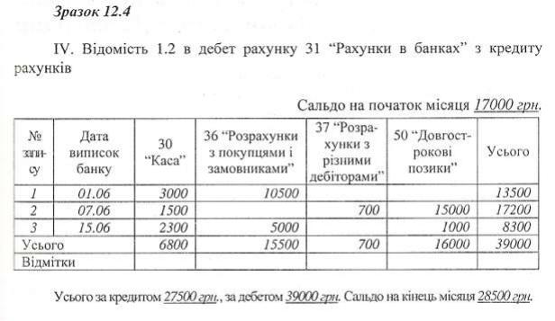 Синтетичний облік за рахунком 31 "Рахунки в банках" ведеться в Журналі 1 (див. лекцію 10) та Відомості 1.2 (зразок 12.4).