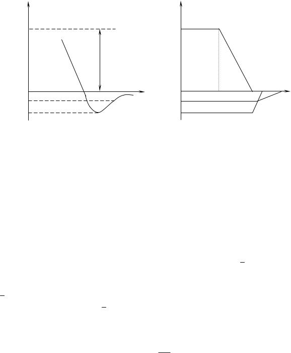 Рис. 4.4.1. Часова характеристика пропорційного регулятора при стрибкоподібній зміні вхідної величини: 1) ідеальний регулятор; 2) реальний регулятор