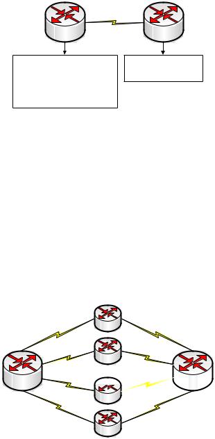 Протокол RIP способен осуществлять распределение нагрузки по нескольким маршрутам с равной стоимостью, число которых не должно превышать 16. На рисунке 5.12 приведен пример распределения нагрузки по четырем маршрутам с равной метрикой.
