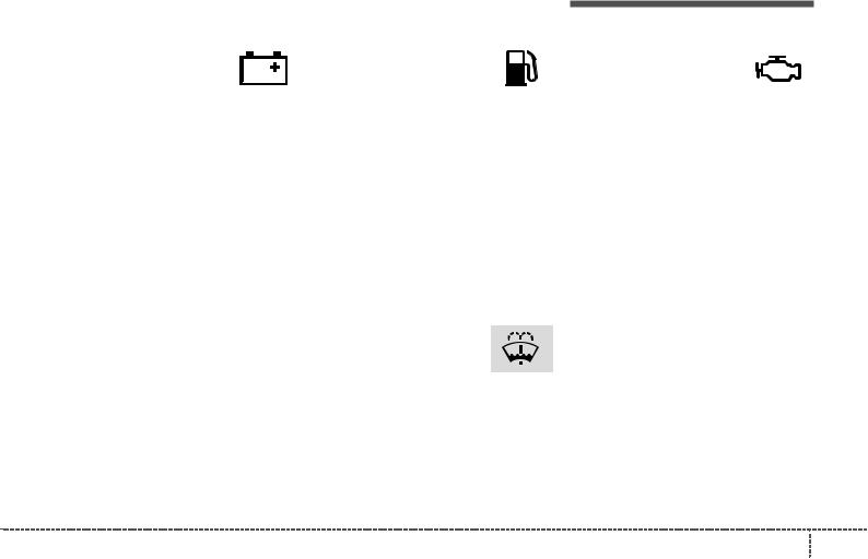 Эта лампа указывает на то, что топливный бак автомобиля почти пуст. В такой ситуации необходимо как можно скорее заправить автомобиль топливом. Продолжение движения при горящей лампе, предупреждающей о низком уровне топлива в баке, или в случае, когда стрелка указателя уровня топлива находится ниже отметки “Е”, может привести к пропуску вспышек в цилиндрах двигателя и повреждению каталитического нейтрализатора.