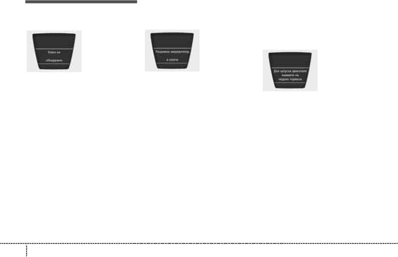 ключ зажигания находится в положении ACC, oN или STArT, на ЖК-экра- не высвечивается предупреждение. В течение 5 секунд подается звуковой сигнал, когда электронный ключ не находится в транспортном средстве и закрыта любая дверь. Необходимо выключить зажигание или принести электронный ключ.