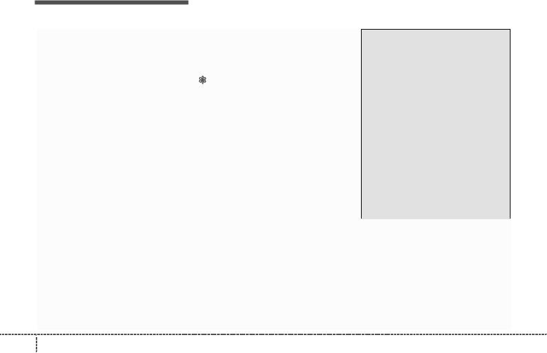•Если через 2 секунды после поворота ключа зажигания в положение oN контрольная лампа гаснет, это может свидетельствовать о неисправности системы. В этом случае рекомендуется обратиться к авторизованному дилеру компании HYUNdAI для проверки системы.