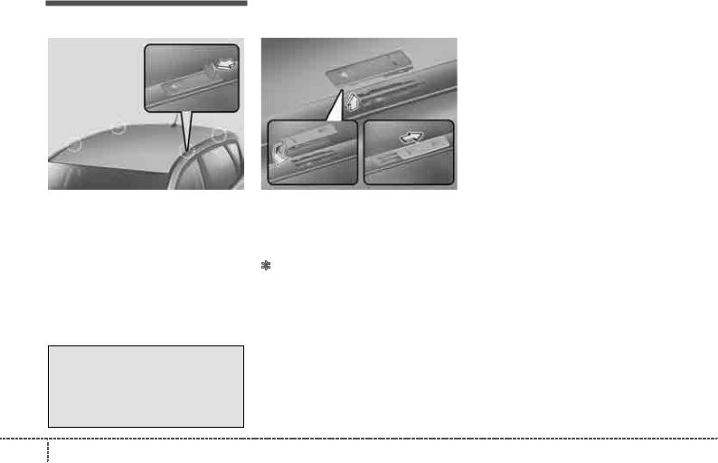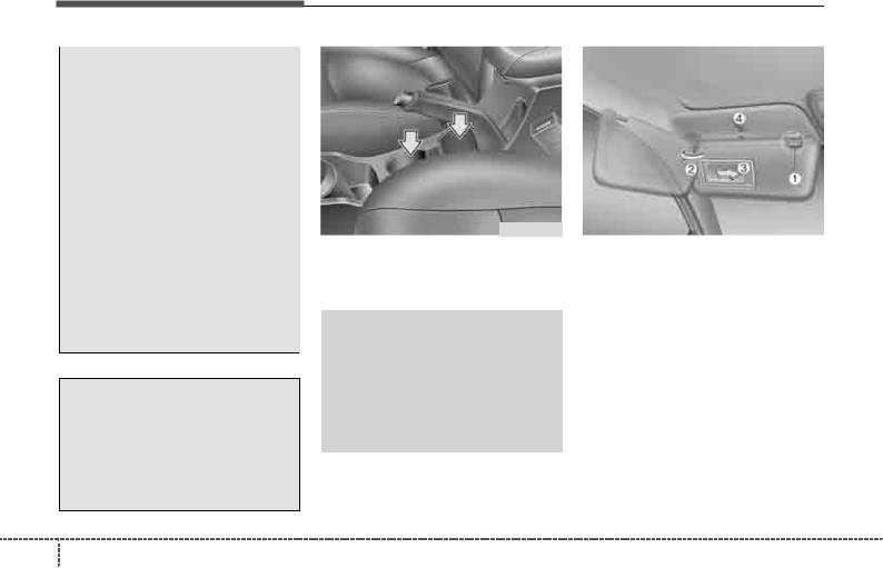 •Чтобы предотвратить поломку или деформацию солнцезащитных очков, не вставляйте их с силой в отделение для солнцезащитных очков. Попытка принудительного открывания отделения, если в нём застряли очки, может привести к травме.