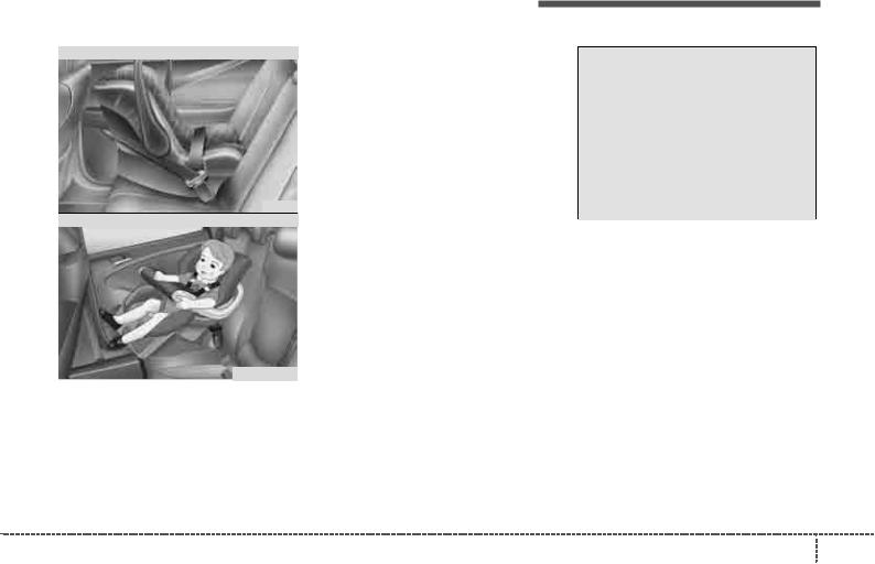 •Дети часто беспорядочно двигаются и принимают неправильное положение. Никогда не допускайте размещения плечевого ремня безопасности под рукой или за спиной ребенка во время движения автомобиля. Всегда размещайте ребенка на заднем сиденье и фиксируйте его положение должным образом.