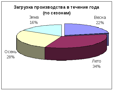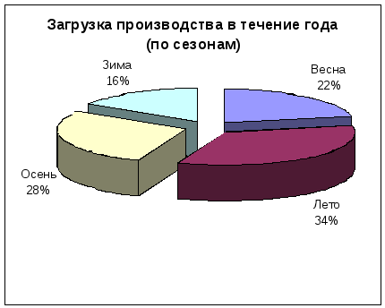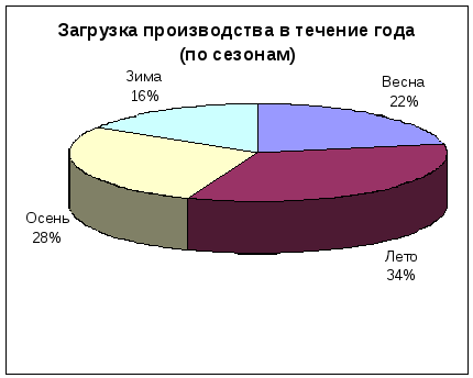 Построим объемную круговую диаграмму, которая отображает загрузку производства в течение года.