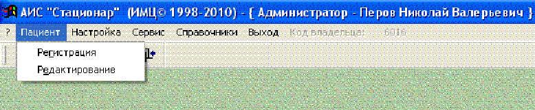 Доступ к данному режиму осуществляется через пункт меню Пациент.