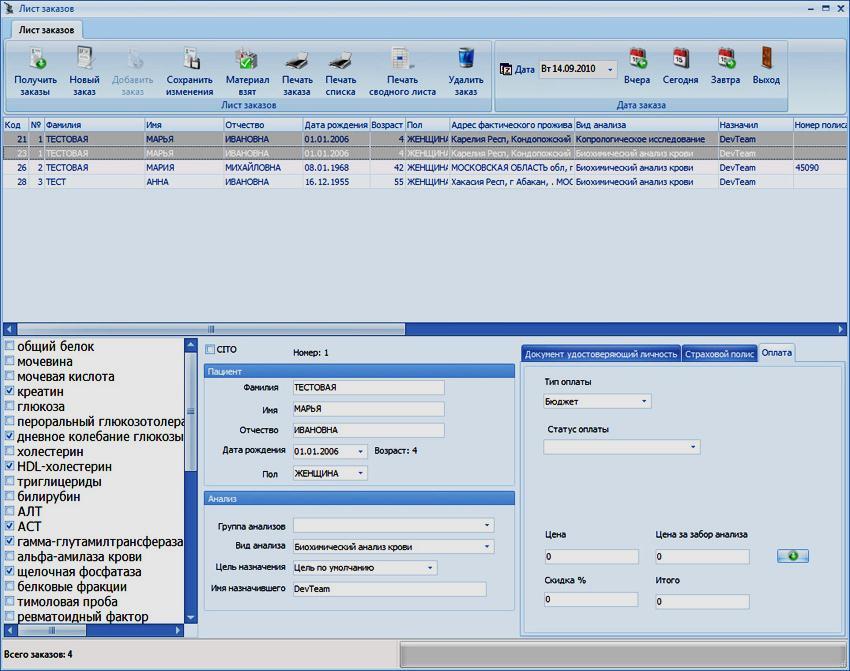 Рис. Работа с листом заказов в лабораторной информационной системе