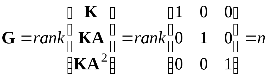 Условие (8.21) означает, что система будет полностью наблюдаемой, если ранг гиперматрицы G равен n, т. е. матрица наблюдаемости содержит n независимых векторов-столбцов а, следовательно, ее определитель не равен нулю.