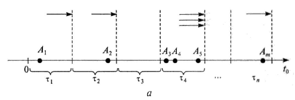 На рисунке 1 представлена иллюстрация данного механизма. Для этого механизма считают, что событие А1наступило в момент окончания первого шага; событие А2- в момент окончания второго шага; события А3, А4, А5- в момент окончания четвертого шага (эти моменты показаны стрелками) и т.д.