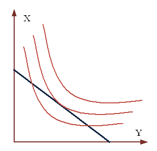 На рисунке показана ситуация равновесия потребителя при заданных ценах на товары X и Y и номинальной величине дохода потребителя: