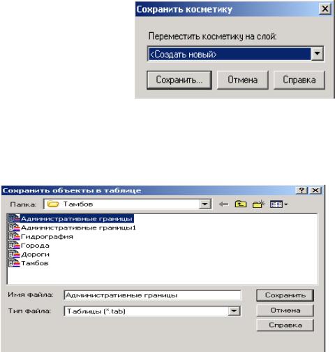 В диалоге указываем имя файла и адрес сохраняемого файла, при этом сохраняем созданный слой как: "Тип файла" "ТАБЛИЦА" (Рис. 6.3.5).