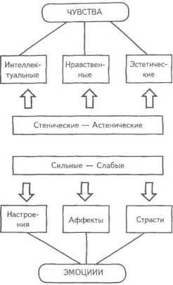 Рис. ХИЛ. Классификация эмоций и чувств Говоря о переживании человека, употребляют два термина — «чувства» и «эмоции». В широком