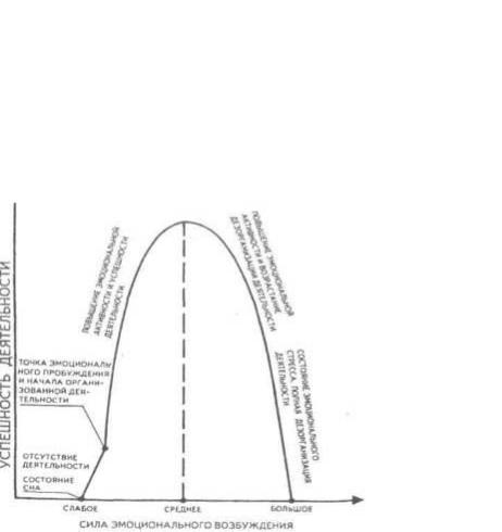 Рис. XII.7. Зависимость успешности деятельности человека от силы его эмоционального возбуждения (по Д.О. Хеббу)