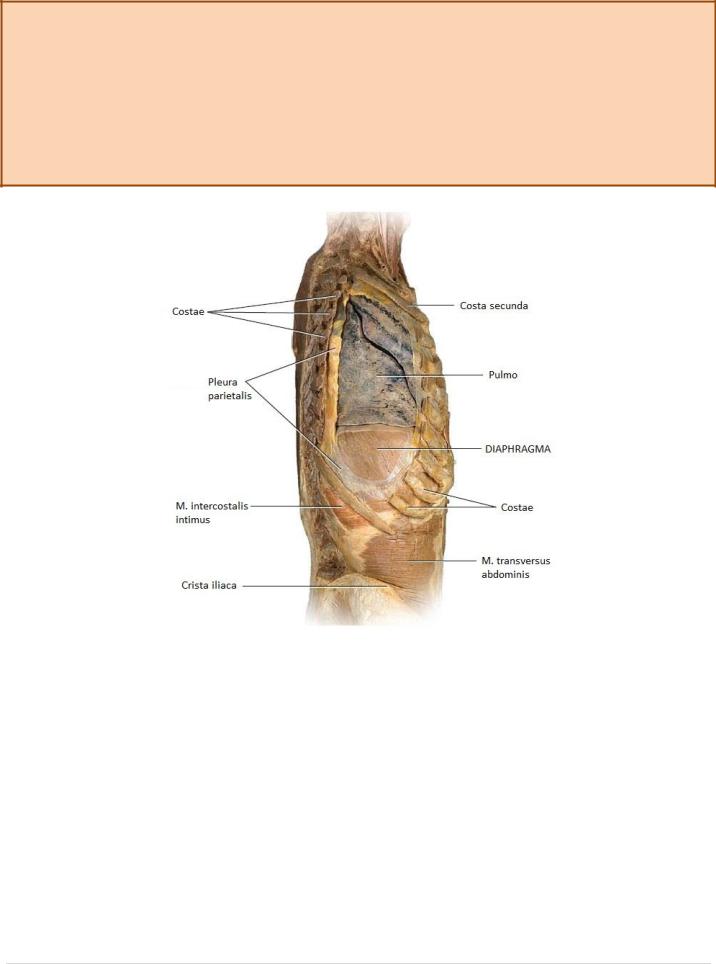 Сверху диафрагма покрыта f. endothoracica и плеврой;