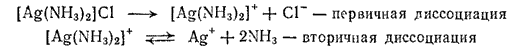 Комплексные соединения неэлекторлиты в растворах диссоциации не подвергаются. В растворах крсплекнсые соединения могут подвергаться первичной и вторичной диссоциации. Первичная диссоциация- это распад на комплексный ион,образованный внутренней сферой и ионы внешней среды. В водных растворах первичная диссоциация обусловлена разрывом ионной связи между внутренней и внешней сферой.