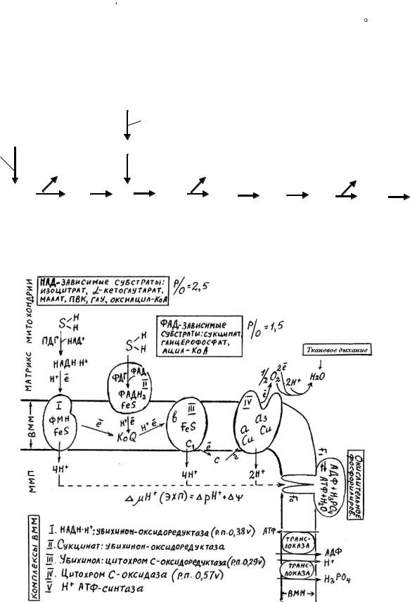 Рис. 7.1. Схема сопряжения тканевого дыхания и окислительного фосфорилирования: