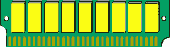 В модуле SIMM элементы памяти собраны на маленькой печатной плате длиной около 10 см. Ёмкость таких модулей неодинаковая - 256 Кбайт, 1, 2, 4, 8, 16, 32 и 64 Мбайта. Различные модули SIMM могут иметь разное число микросхем - девять, три или одну, и разное число контактов - 30 или 72.