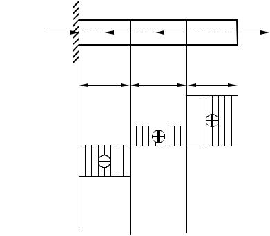Исходные данные. Эпюра продольной силы, построенная в предыдущей контрольной работе, допускаемое напряжение на растяжение – сжатие [σ]= 150 МПа, модуль продольной упругости Е = 2∙1011 Па, допускаемое значение удлинения стержня [Δℓ] = Σℓi∙10-4 м, где ℓi – длины грузовых участков.