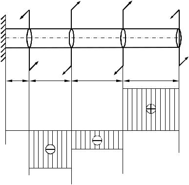 Исходные данные. Эпюра крутящего момента, построенная в предыдущей контрольной работе, допускаемое напряжение на кручение [τ] = 90 МПа, модуль сдвига G = 8∙1010 Па, допускаемый относительный угол закручивания [Φ]=1,2∙10-2 рад/м.