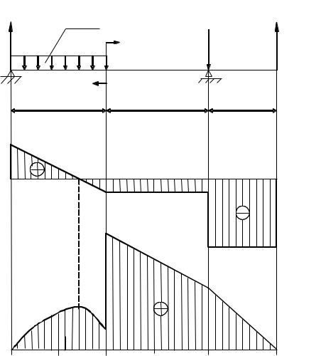 В заключение еще раз обратим внимание на связь между поперечной силой и изгибающим моментом, которая прослеживается на эпюрах по всей длине балки. Кроме того, в сечениях, где приложены сосредоточенная сила или сосредоточенный момент, соответствующая эпюра терпит скачок, величина которого в точности равна величине приложенной здесь внешней нагрузки.