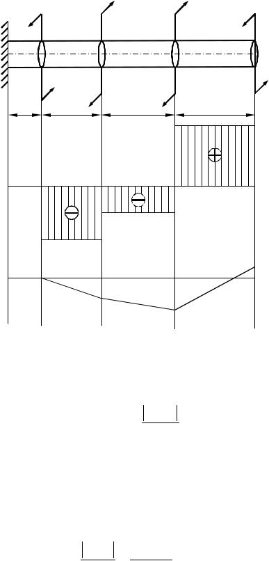 Задача 2. Рассмотрим стержень круглого сечения, нагруженный скручивающими моментами. Эпюра крутящего момента для этой задачи была получена в примере ранее.