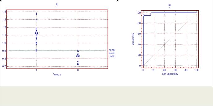 RI=0,902 (площадь под ROC-кривой AUC=0,992, |