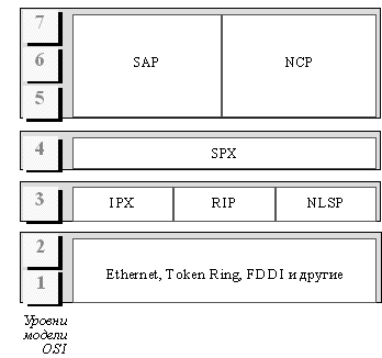 На физическом и канальном уровнях в сетях Novell используются все популярные протоколы этих уровней (Ethernet, Token Ring, FDDI и другие).