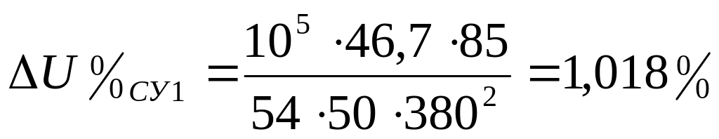 Определяем суммарную потерю напряжения на всем участке от трансформаторной подстанции до СУ2