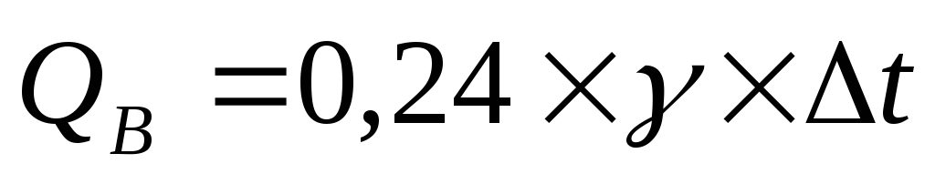 Расход тепла на нагрев вентилируемого воздуха рассчитывается по формуле 8: