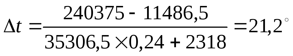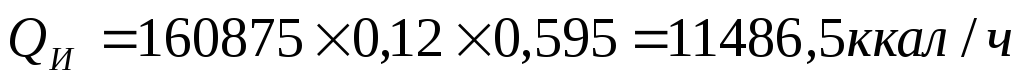 теплопотери на испарение влаги – 11486,5 ккал/ч.