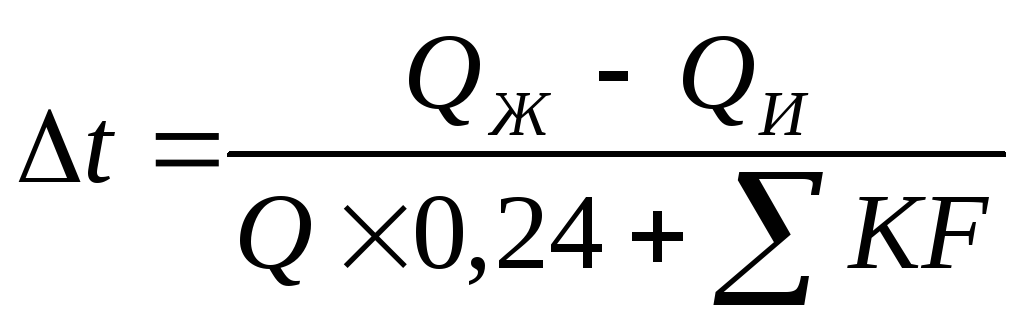 Если левая часть уравнения (приход тепла) больше правой (расход тепла), то в помещении образуется избыток тепла, если меньше - наблюдается недостаток тепла. При равенстве обеих частей уравнения в помещении создается тепловое равновесие.