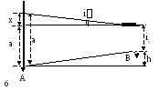 Пусть угол между осями iне равен нулю. Тогда отсчеты по рейкамaиbбудут отклоняться от теоретических нах. В соответствии с формулой (6.2) запишем:h = ia - b0 = ia – (b - x) ; h = a0 - ib = a – x – ib, откуда следует, что