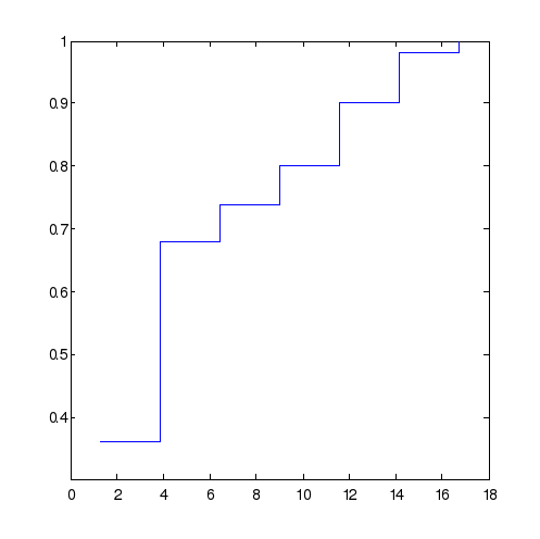 figure; stairs(Z, NS/n) %Эмпирическая функция распределения